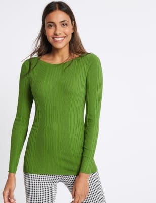 Gebreid truitje met 3/4 mouwen en boothals.